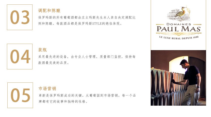原產地:法國-朗格多克級別:IGP年份:2018類型:干型葡萄品種:50%歌海娜,25%佳麗釀, 15%神索,10%美樂酒精度:13.5%vol凈含量:750ml顏色:寶石紅中泛有紫色光澤;酒香:清新的李子和覆盆子的香氣漸漸擴散為香料的香氣;味蕾:酒體飽滿,入口圓潤,單寧細膩而柔和,層次鮮明,有各種非常成熟的水果,如櫻桃,李子,白胡椒,甘草香料的氣息,余味綿長。食物搭配:牛扒、烤肉、干酪等搭配飲用。最佳適飲溫度:15-18℃建議醒酒時間:20-30分鐘