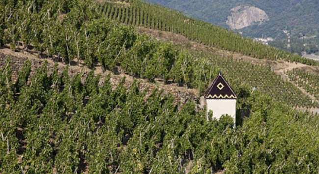 在北羅納河谷葡萄園,河流流經(jīng)之處多為狹窄的峽谷和陡峭的山坡,因此葡萄園也更多地種植在靠近河流的陡坡上。由于離海洋較遠(yuǎn),北羅納河谷葡萄園以大陸性氣候?yàn)橹鳎侄喽嗌偕贂?huì)受到地中海(Mediterranean)氣候的影響,夏季炎熱干燥,冬季寒冷少雨。這里的土壤以礫石、石灰?guī)r和頁巖為主,排水性能優(yōu)越。這樣一來,種植在山坡上的葡萄藤可以更好地接收生長季充足的陽光,再加上排水性良好的土壤,有助于葡萄果實(shí)更好地成熟。北羅納河谷葡萄園著名的子產(chǎn)區(qū)羅第丘(Cote Rotie)在法語中意為“被炙烤的山坡”,就很形象地描繪了這一風(fēng)土特點(diǎn)。