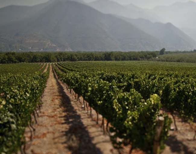 邁坡谷(Maipo Valley)位于智利的中央山谷(Central Valley)產(chǎn)區(qū),靠近智利首都圣地亞哥,是智利葡萄酒業(yè)的經(jīng)典核心產(chǎn)區(qū),此處超過一半的葡萄園都種植了赤霞珠。這一山谷幾乎被群山環(huán)抱,僅有極少的海洋影響能夠到達首都南面的主要葡萄種植區(qū)。大部分優(yōu)質的葡萄園均位于安第斯山脈山麓,下沉氣流帶來了降溫作用,使這里出產(chǎn)的赤霞珠紅葡萄酒香氣優(yōu)雅,結構堅實,帶有特殊的薄荷氣息。上邁坡(Alto Maipo)為邁坡谷的精英產(chǎn)區(qū),這里的葡萄園海拔較高,能從多個方向接受陽光的照射,白天溫暖,夜晚涼爽,葡萄生長季雨水較少。最重要的是,這里的沖積巖土壤排水性佳且能給葡萄帶來礦物質風味。