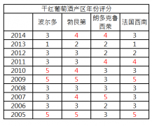 近10年葡萄酒的年份優(yōu)劣一覽表