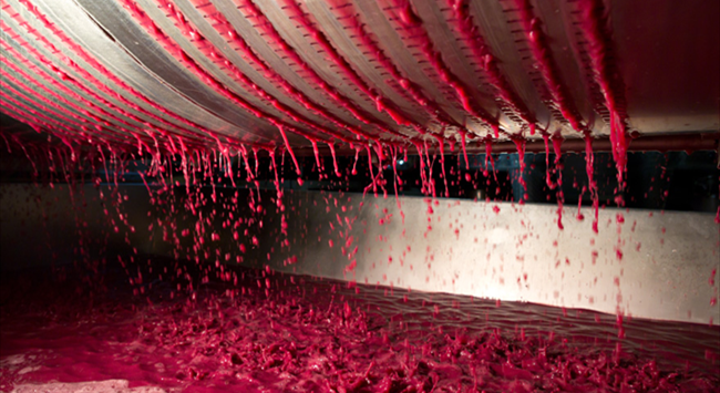 葡萄采收后會進(jìn)行去梗和破皮,但這不是必須工序,因?yàn)橛行┚魄f會特意保留果梗,保持果實(shí)顆粒完整,以便進(jìn)行整串發(fā)酵。破皮的過程需盡可能輕柔,避免破壞葡萄籽,釋放出苦油和單寧。