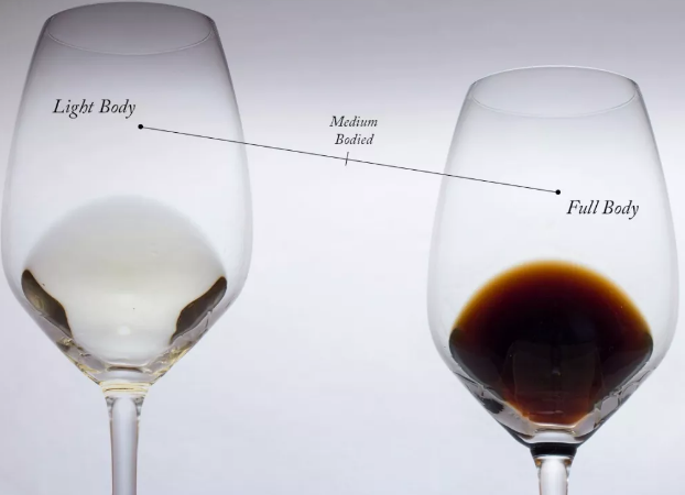 酒體一般形容一款葡萄酒入口后給舌頭的重量感。一般是葡萄酒重量、密度、粘度等口感的總合。一般會(huì)用礦泉水和牛奶做示范,展現(xiàn)不同密度的液體入口的感覺。