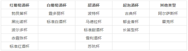 普通的葡萄酒愛好者自然沒有必要一一購(gòu)買上述所有酒杯。對(duì)于剛剛開始學(xué)習(xí)品酒,只是想要輕松享受品酒樂趣的童鞋來(lái)說(shuō),一組簡(jiǎn)單的酒杯組合就已經(jīng)能夠滿足需求,包括: