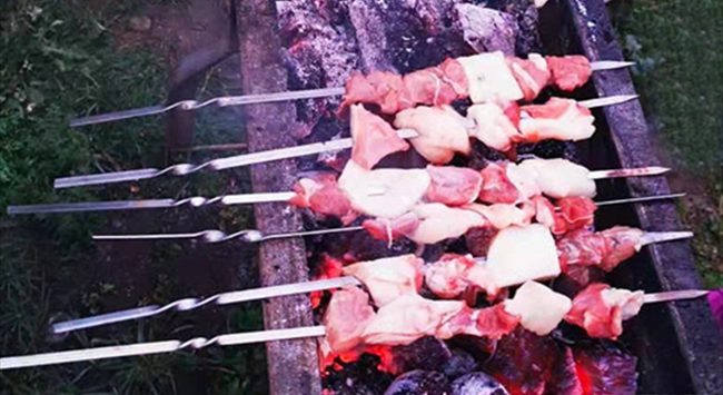 烤羊肉串是一種流行于中東、南亞、中亞、地中海、東亞等多個(gè)地區(qū)的羊肉菜式。在中國,烤羊肉串的歷史可追溯至東漢時(shí)期,20世紀(jì)80年代以來隨著時(shí)代的發(fā)展,在大江南北傳揚(yáng)開來。烤羊肉串看似簡單,要保證羊肉既入味又鮮嫩卻并非易事,工序也十分考究——取新鮮羊肉或切片切塊,串穿在細(xì)鐵釬上,放置在烤爐上焙烤,再撒上些辣子面、胡椒粉和孜然粉等,不斷翻動(dòng),烤至雙面金黃,肉質(zhì)熟透。