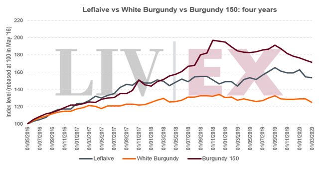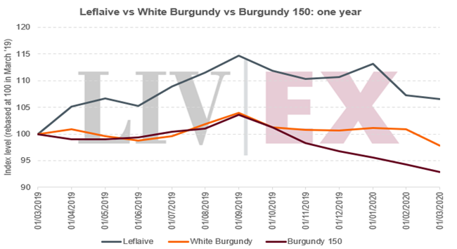 然而,在過去的一年,勒弗萊(6.5%)的表現(xiàn)也優(yōu)于勃艮第150(-7.2%)。 事實(shí)上,勃艮第150指數(shù)是表現(xiàn)最差的Liv-ex 1000分項(xiàng)指數(shù); 我們?cè)谧罱膶n}報(bào)告: 高峰后的勃艮第 中也探討了它的跌勢。