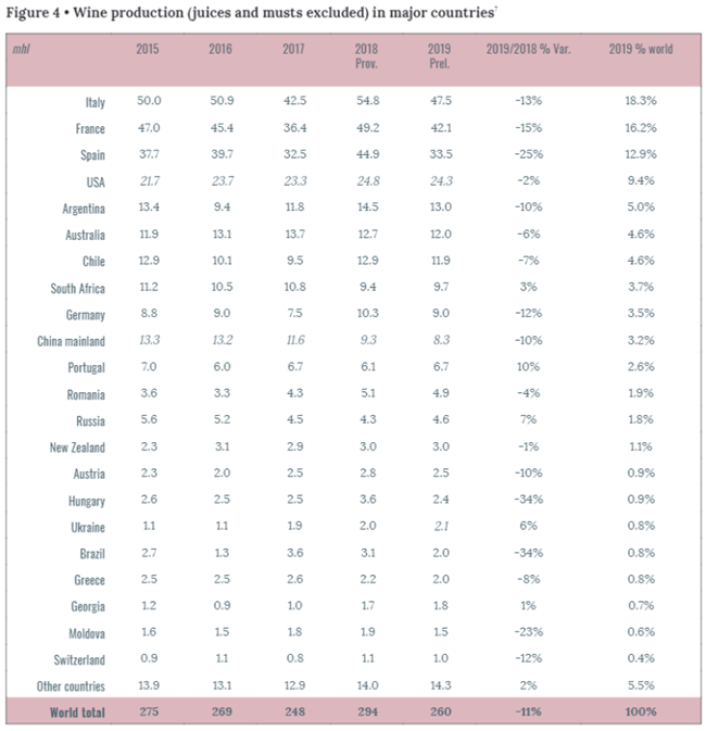 (2015—2019主要國(guó)家的葡萄酒生產(chǎn))