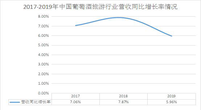 據(jù)不完全統(tǒng)計,2019年中國葡萄酒旅游行業(yè)營收同比增長率約為5.96%,在旅游行業(yè)中,處于上游水平,行業(yè)發(fā)展能力較良。