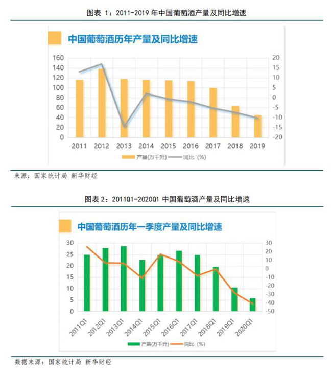 1、國(guó)產(chǎn)葡萄酒受疫情影響下滑加劇,2020Q2開啟弱復(fù)蘇