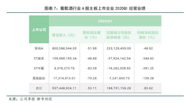 新冠肺炎疫情對(duì)于本就脆弱的葡萄酒行業(yè)來講,無疑是一記重錘。2020年第一季度,四家葡萄酒企業(yè)總營(yíng)收9.37億元,同比降低53.11%;實(shí)現(xiàn)歸母凈利1.69億元,同比降低65.62%。只有張?jiān)R患覛w母凈利維持正值,其余皆為虧損。業(yè)內(nèi)人士曾表示“葡萄酒行業(yè)'短期不樂觀',2020年將是國(guó)內(nèi)葡萄酒市場(chǎng)近十年來最艱難的一年。”