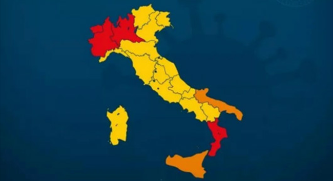 綜合意大利《24小時(shí)太陽報(bào)》、安莎社、Fanpage網(wǎng)站等報(bào)道,意衛(wèi)生部將全國分為紅色、橙色和黃色3種不同風(fēng)險(xiǎn)地區(qū)。其中,最高風(fēng)險(xiǎn)的“紅區(qū)”包括:倫巴第(Lombardia)、皮埃蒙特(Piemonte)、卡拉布里亞(Calabria)、瓦萊達(dá)奧斯塔(Valle d'Aosta);中等風(fēng)險(xiǎn)的“橙區(qū)”包括:普利亞(Puglia)、西西里(Sicilia);其余地區(qū)均被歸為風(fēng)險(xiǎn)較低的“黃區(qū)”。根據(jù)目前疫情趨勢,威尼托(Veneto)、利古里亞(Liguria)、坎帕尼亞(Campania)和托斯卡納(Toscana)的指標(biāo)已非常接近“橙區(qū)”。