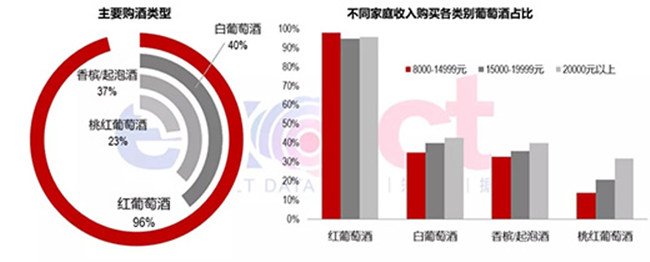 值得注意的是,桃紅葡萄酒在高收入家庭中的購買比例明顯高于低收入家庭。