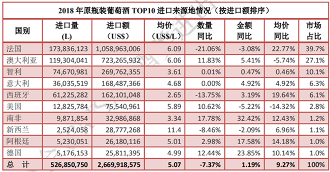 (二)前十大原瓶裝葡萄酒進(jìn)口來(lái)源地情況