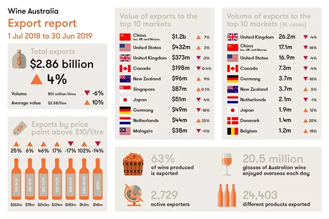 根據(jù)澳大利亞葡萄酒管理局(Wine Australia)公布的數(shù)據(jù),2019年前5個(gè)月,澳大利亞出口中國(guó)大陸的葡萄酒總價(jià)值首次超越法國(guó),成為中國(guó)進(jìn)口葡萄酒的第一大來(lái)源國(guó)。