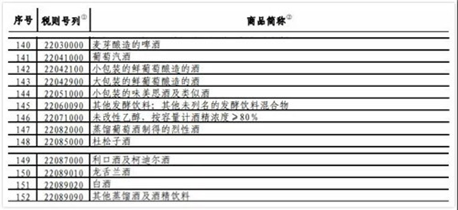葡萄酒在內(nèi)的酒類商品作為美國重要的農(nóng)產(chǎn)品,就包含在《國務(wù)院關(guān)稅稅則委員會(huì)關(guān)于對原產(chǎn)于美國的部分進(jìn)口商品(第 3 批)加征關(guān)稅的公告》(稅委會(huì)公告〔2019〕4 號)附件 2 第 1 部分商品內(nèi),因此可以免予在此前基礎(chǔ)上加征的 10% 關(guān)稅。具體包含內(nèi)容如下: