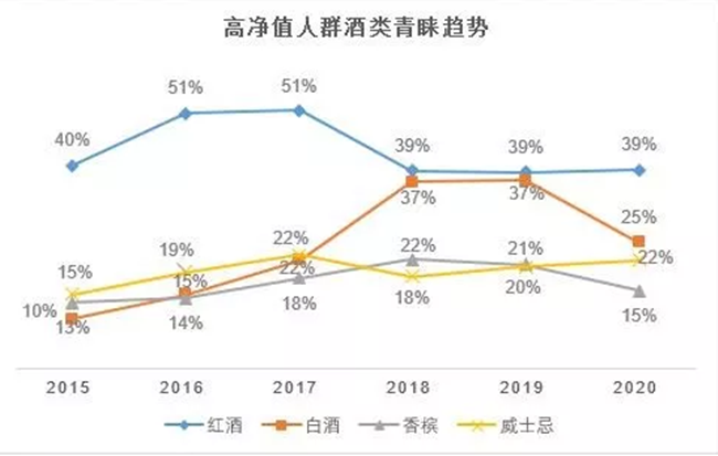 實(shí)際上,葡萄酒已越來(lái)越成為中國(guó)消費(fèi)者喜愛(ài)的酒精飲料。據(jù)胡潤(rùn)研究院發(fā)布《2020胡潤(rùn)至尚優(yōu)品—中國(guó)千萬(wàn)富豪品牌傾向報(bào)告》顯示,中國(guó)高凈值人群(平均家庭總資產(chǎn)4600萬(wàn)元)最青睞酒類(lèi)是紅酒,對(duì)葡萄酒的喜愛(ài)甚至超過(guò)白酒。